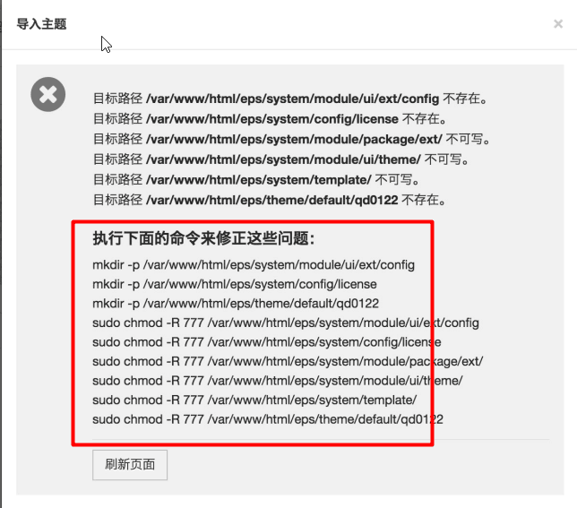 如果遇到目录权限问题,可以把提示的命令放到服务器上执行一下: