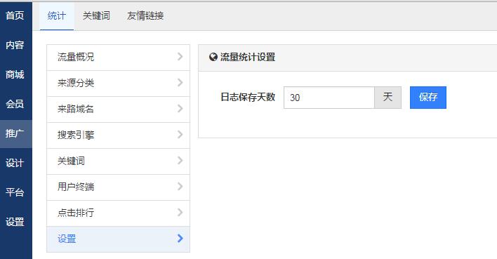 还可以在设置里设置统计日志保存的天数。