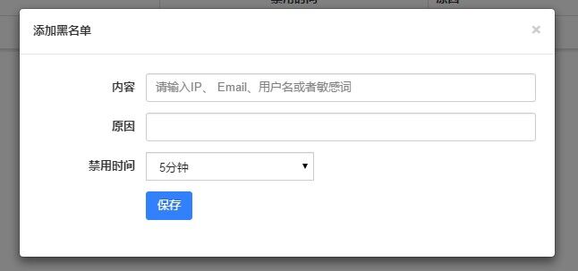 点击右上角的添加黑名单按钮后,可以在跳出的提示框里填写相关的内容和原因。