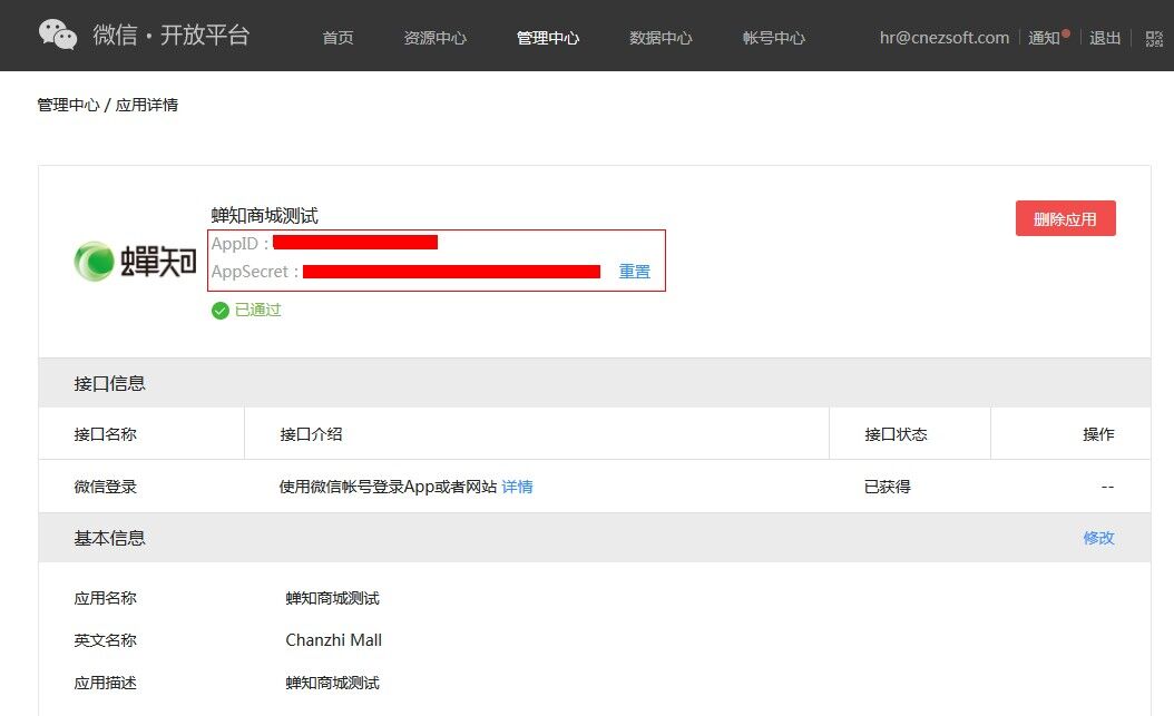 4. 到蝉知后台-设置-接口,填写微信登录接口信息。(