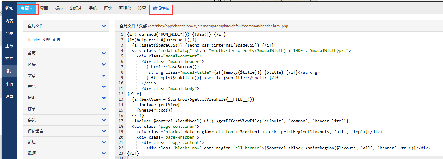 蝉知 企业建站系统从5.3版本开始,添加了在线 模板编辑功能,用户可以在后台直接操作编辑所有模板文件,方便快捷。