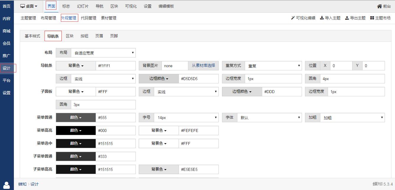你可以根据自己的需要做自定义,把自定义的样式都保存后,可以导出主题,那么这个主题就是您自己设计的蝉知网站风格了。