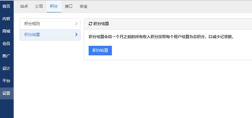 积分结算: 积分结算会将一个月之前的所有收入积分按照每个用户结算为总积分。以减少记录数。