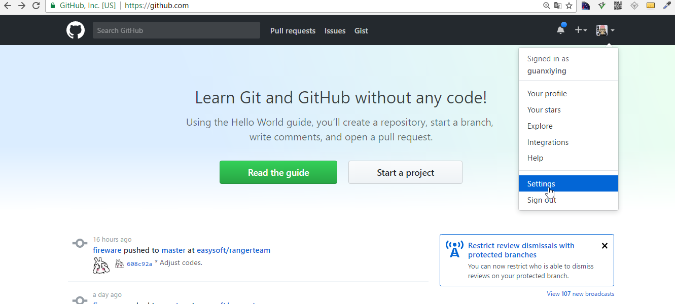 登录后点击右上角头像,点击下拉菜单的setting 按钮进入。