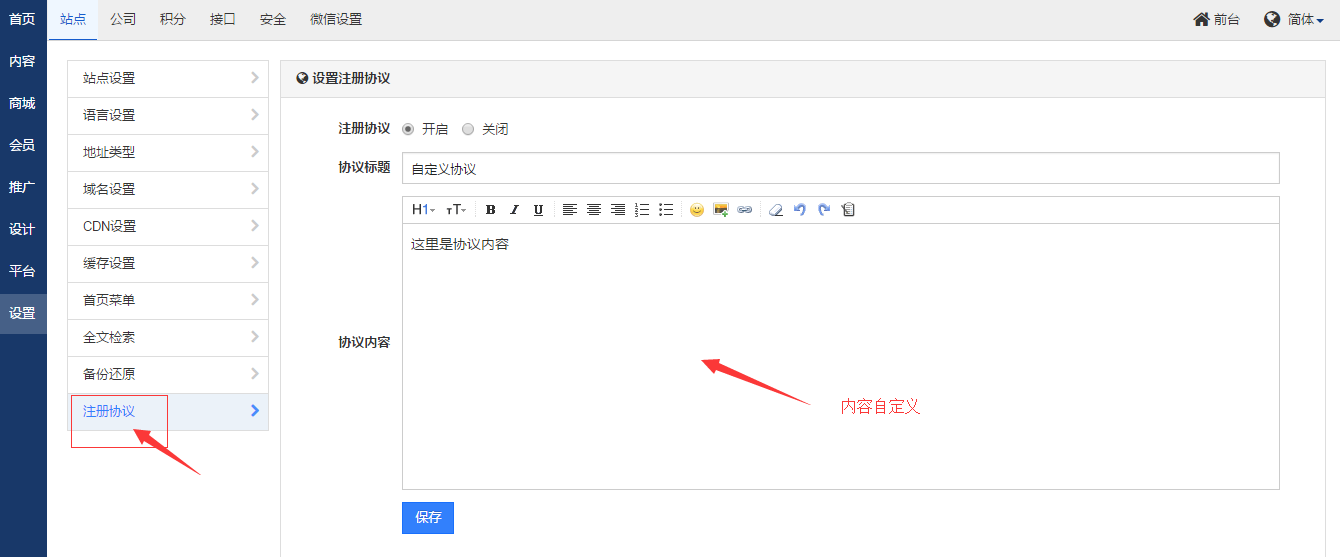 蝉知6.1版本开始新增加了注册协议自定义功能,用户注册时同意遵守该协议方可注册。