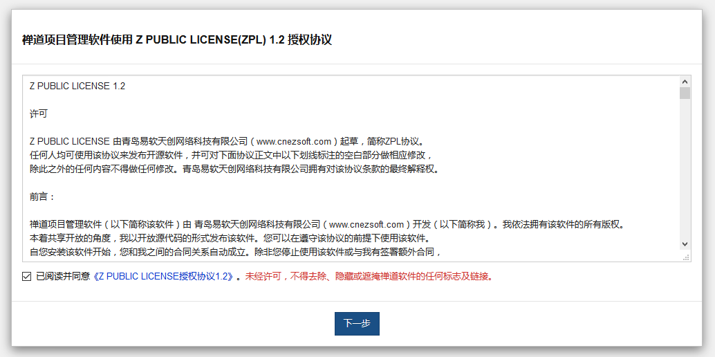 浏览器访问:http://127.0.0.1/zentao,系统会自动进入禅道的安装程序,按照安装提示安装即可。