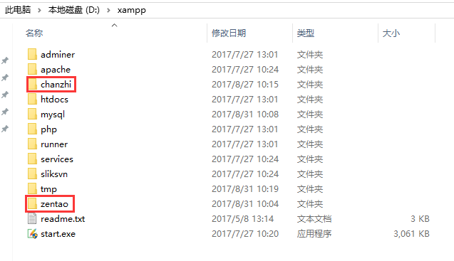 zentao文件夹和原 chanzhi 文件夹是平行的,类似 xampp/zentao这样的目录。