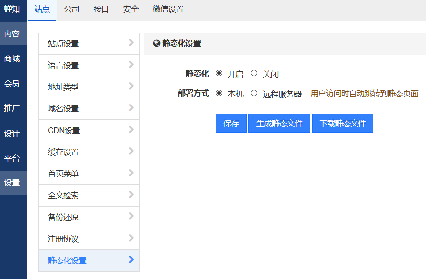 蝉知静态化部署方式: