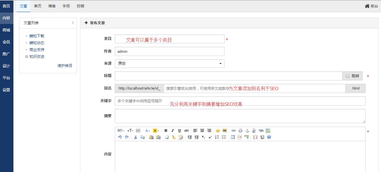 - 3.1.1.2 如何使用蝉知系统发布文章内容