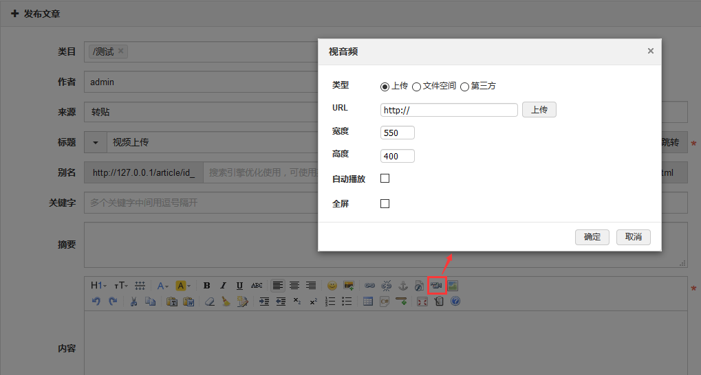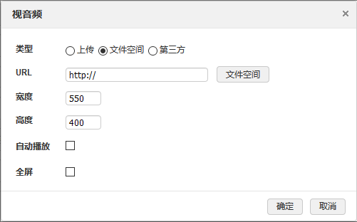 1、本地上传和文件空间上传时,可以设置视频的宽度和高度。