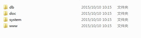 导出的主题目录如下,其实db和system文件夹是可以不做改动的。需要修改的是doc和www文件夹,doc文件夹的yaml文件是需要写的,www是风格文件夹。