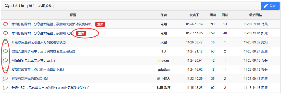 打开论坛功能模块之后,网站管理员需要对论坛进行维护:回帖、删贴、置顶、编辑、引用等,下面我们来看下如何操作:
