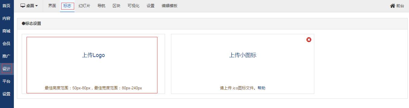 2.点击上传Logo, 选择需要上传的logo图片即可。