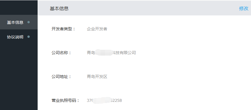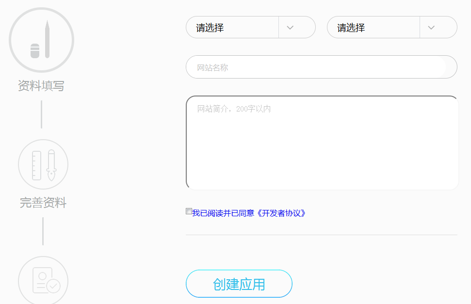 登录后,首先点击自己的头像进入开发者资料的信息填写界面,开发者类型建议大家选择企业开发者,填写信息后,需要审核,审核通过后才可以添加应用。