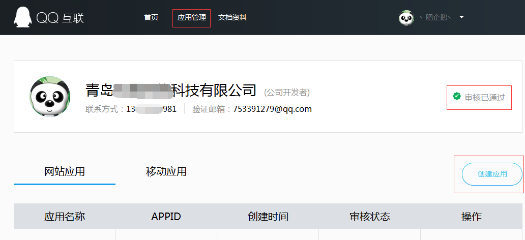3. 开发者信息审核通过之后,就可以 进入应用管理,创建应用。