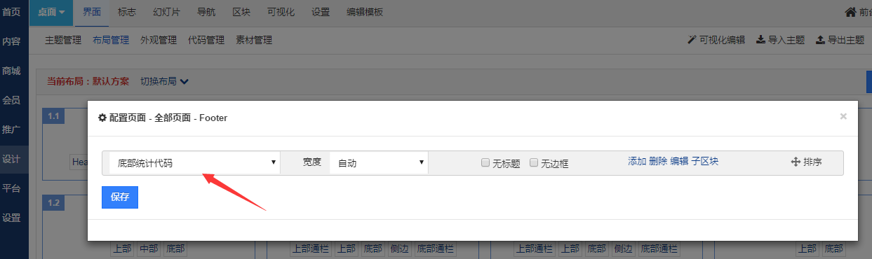 这篇文章我们来给大家举一个具体的例子,展示下如何通过区块和布局功能来部署统计代码: