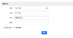 蝉知4.3beta提供了19种区块类型,不同的区块类型可以设定不同的参数。比如新文章的类目、显示条数等。