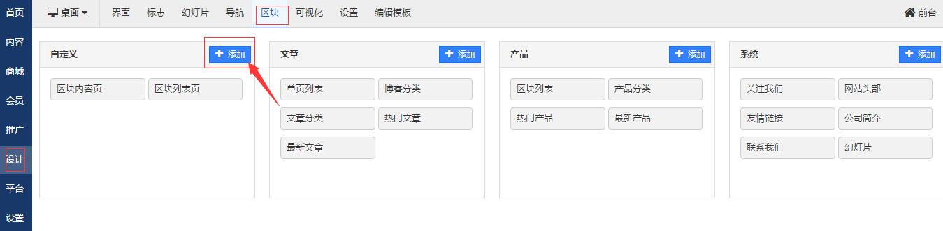 添加区块页面