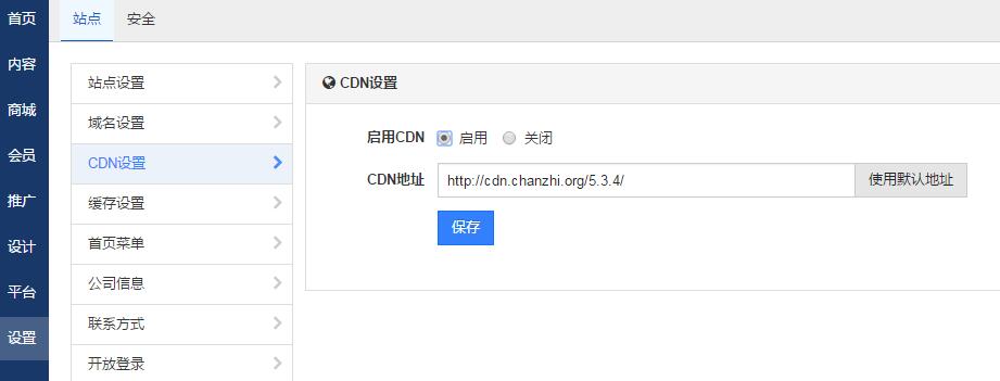 蝉知内置CDN加速功能,目前 仅支持CSS(只提供蝉知原版文件提供的css文件)和JS(只提供chanzhi(eps)/www/js/下所有的*.all.*.js)文件加速,用户可以很方便地一键开启关闭云加速。