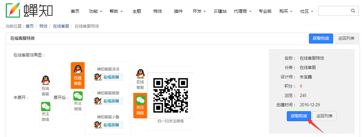 蝉知5.6版本新增社区绑定与特效导入功能,用户在官网注册帐号并完成邮箱和手机认证,就可以获取功能丰富的特效。