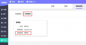 填写了域名并保存提交后,等待蝉知官方审核。此时,您可以在可用授权栏下,查看自己已经申请的基础版授权。如下所示,授权状态还在审核中。