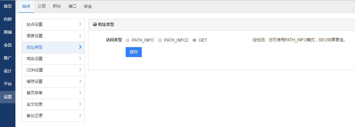 蝉知系统支持三种地址类型,分别是GET、PATH_INFO和PATH_INFO2。