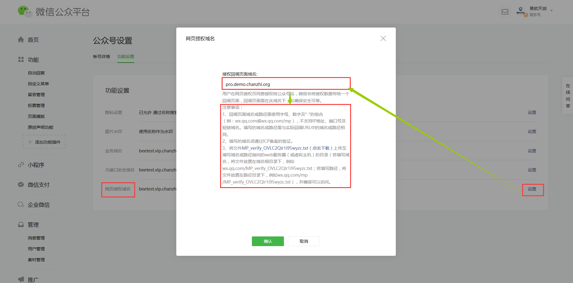 4. 设置微信公众号支付目录
