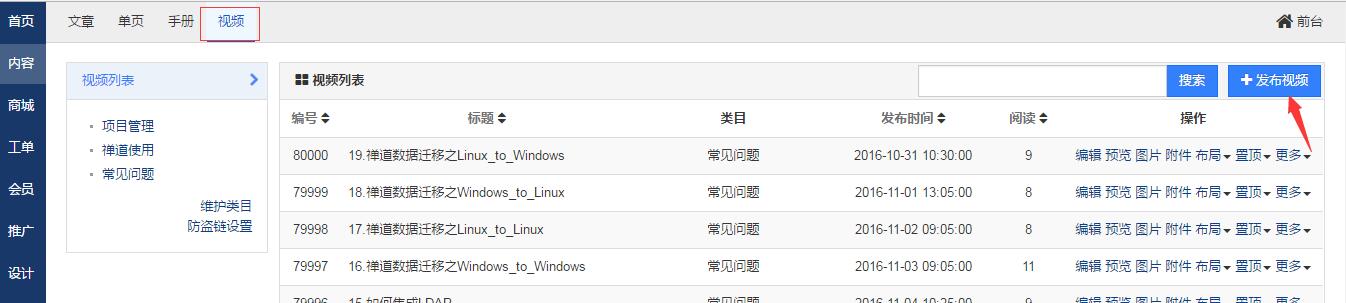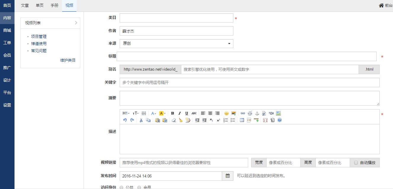 开启了视频模块后,需要先添加视频类目,然后才能发布视频。