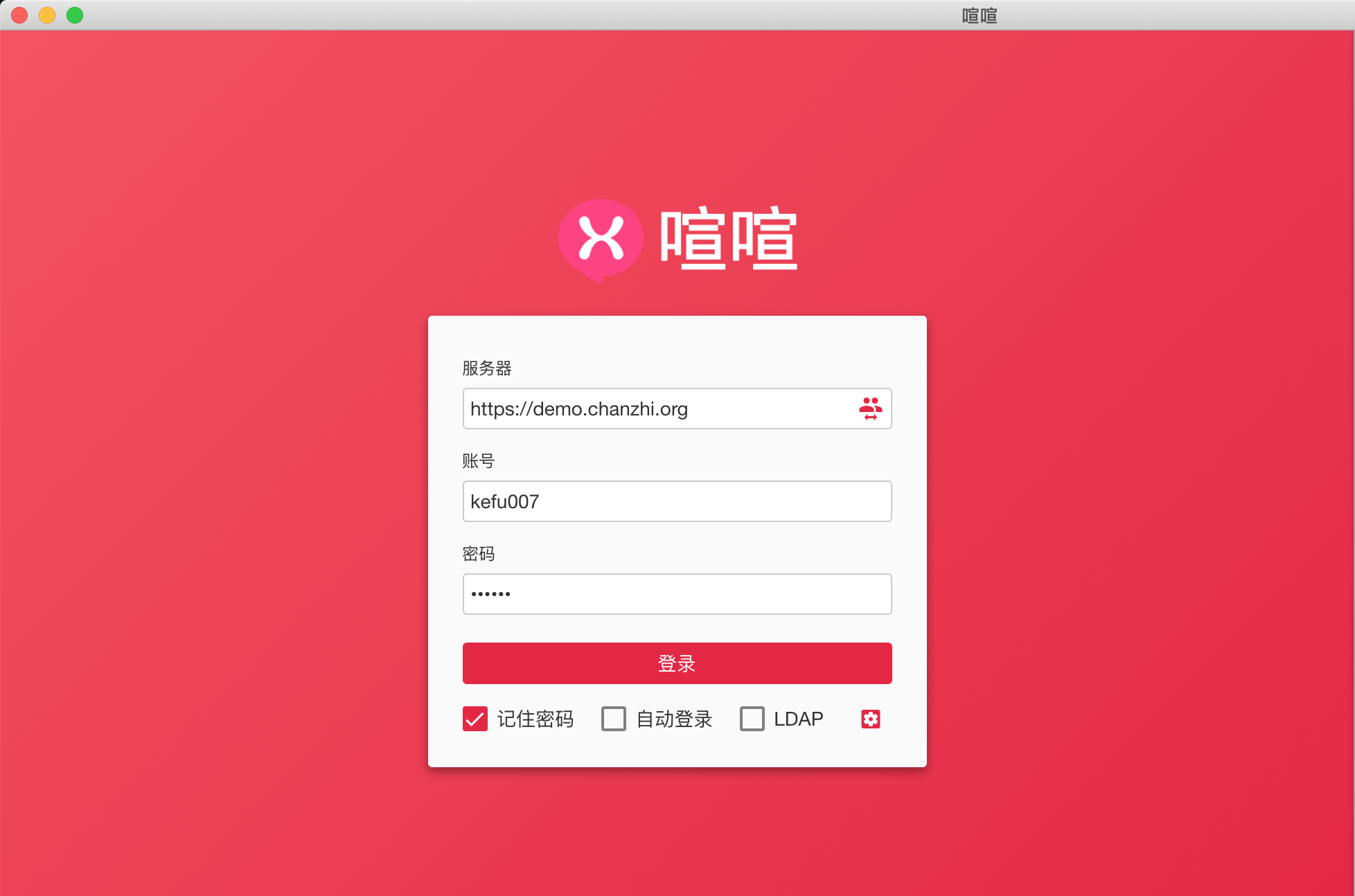 服务器地址填写你的客服服务器配置的地址,使用客服的账号和密码登录即可聊天。