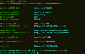 上面设置了要安装的应用之后,接下来就是系统自动安装,这时不需要用户做任何操作,只需要等待,当提示下图界面时说明安装完成,各个应用的安装目录一目了然。随后输入y,重启系统即可。