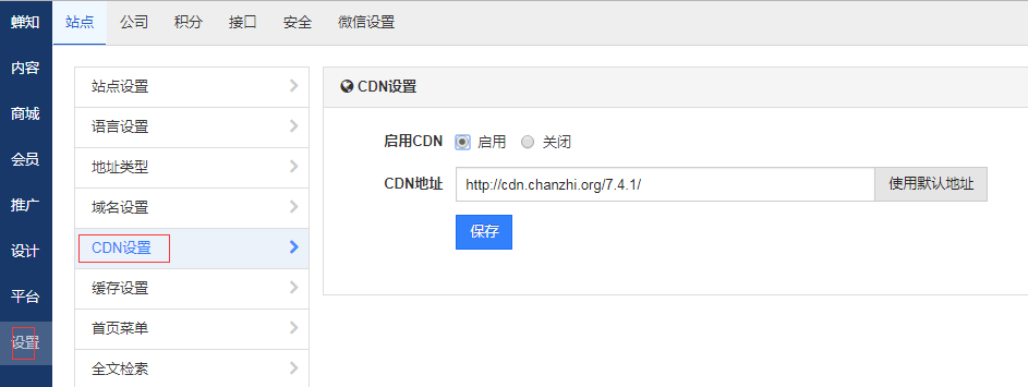 蝉知内置CDN加速功能,目前仅支持CSS(只提供蝉知原版文件提供的css文件)和JS(只提供chanzhi(eps)/www/js/下所有的*.all.*.js)文件加速。