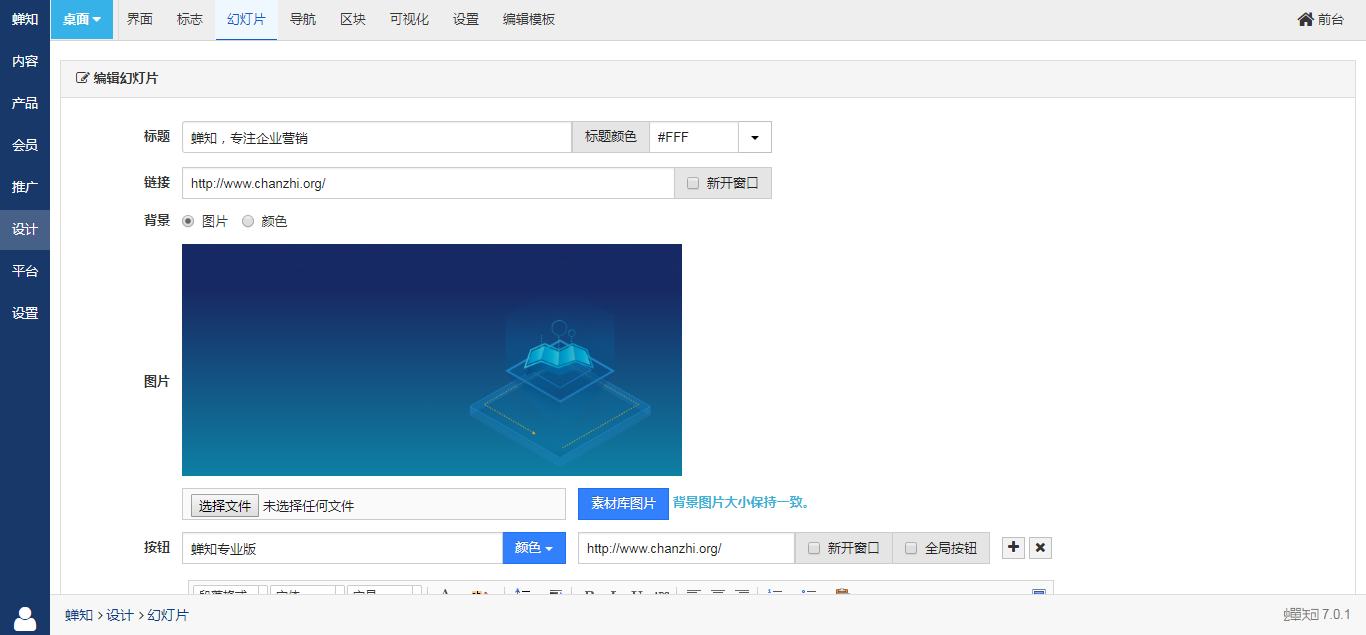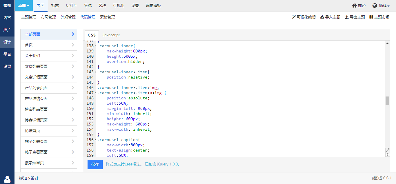 接下来设置幻灯片,按照效果图所示去设置, 设置完成去前台预览效果,这时你会发现幻灯片跟效果图不同!跟网站头部同理,也是要通过CSS来改变幻灯片默认的样式。审查元素找到幻灯片所对应的ID和Class,然后去【代码管理】编写代码。