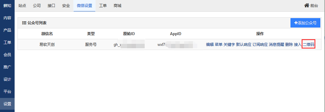 微信公众平台的二维码获取接口是需要认证以后才可以使用的。在没有认证之前,可以通过自己上传的方式将二维码图片上传到 蝉知后台。这样用户可以方便的看到这个微信账号,扫描关注。