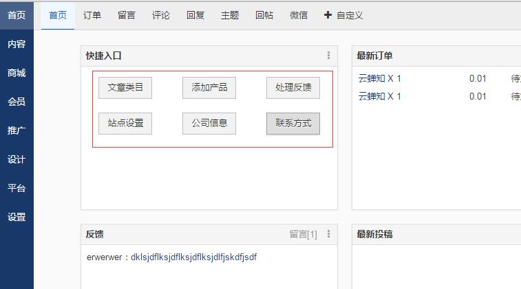 如果我们想自定义后台首页的快捷入口该如何操作,比如我想把下面的【添加产品】去掉。