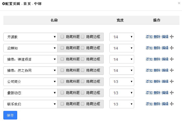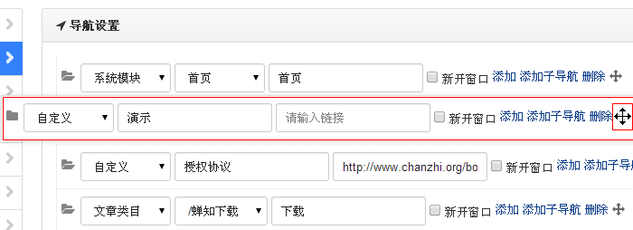 6、后台布局的区块、导航、手册等列表页面的排序改为拖动排序