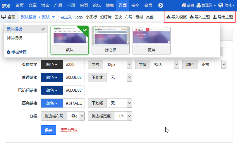 蝉知4.3beta发布,增加主题的导入和导出功能!