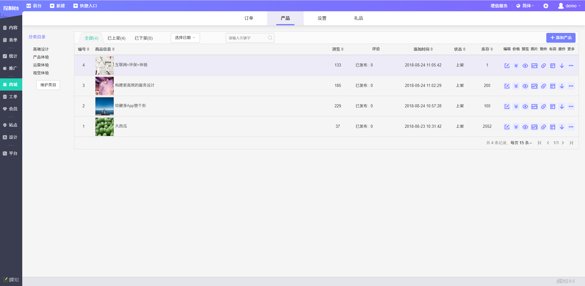 3. 商城设置新增库存预警功能,并且在编辑产品时能编辑单个产品的库存预警数量,当产品库存低于预警数量,列表页面显示库存不足。