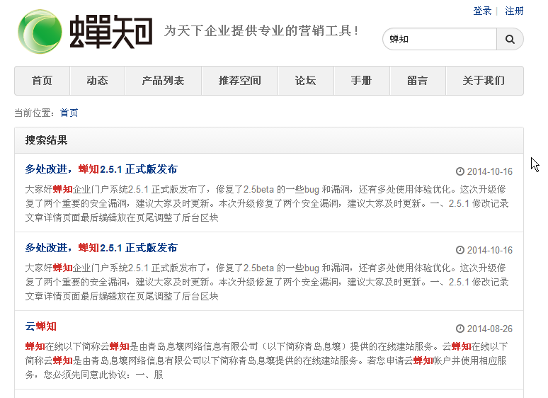 蝉知企业门户系统3.3正式版发布,推出全文检索功能。