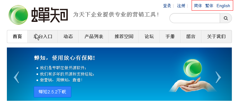 蝉知企业门户系统4.1.beta正式发布,新增多语言功能