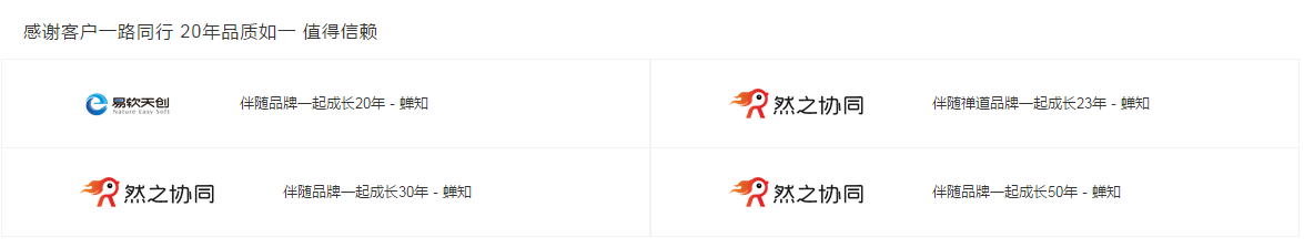 适用于友情链接, 合作客户展示等场景,使用商标可增加公司认知又同时又用文字可以详细描述品牌的作用力量。