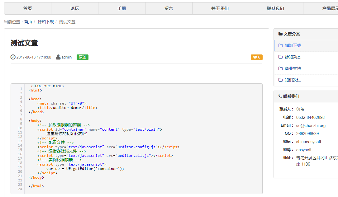 集成百度的Ueditor富文本编辑器。 功能齐全强大,如果蝉知默认的编辑器满足不了你,可以试试这个。 同时引入代码高亮插件。