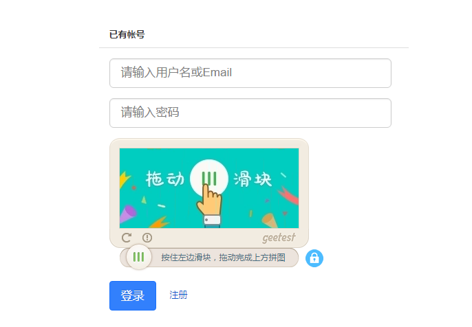 登录验证,拖拽拼图形式验证,安全简便。前台嵌入式验证,后台弹出式验证。 操作简便美观,有效避免恶意登录。