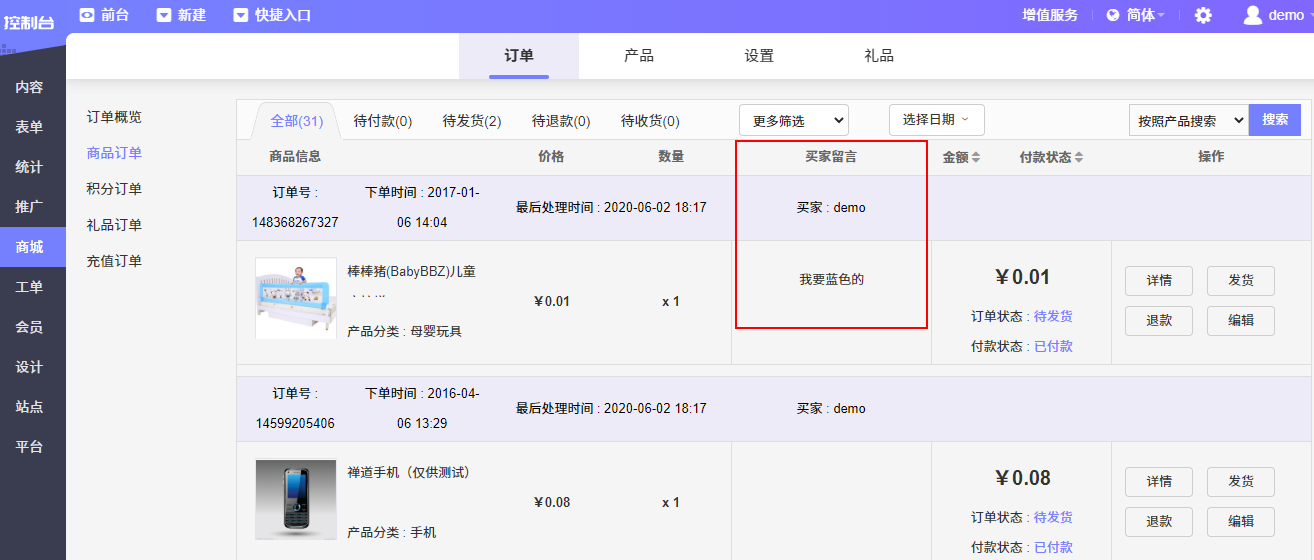 买家留言