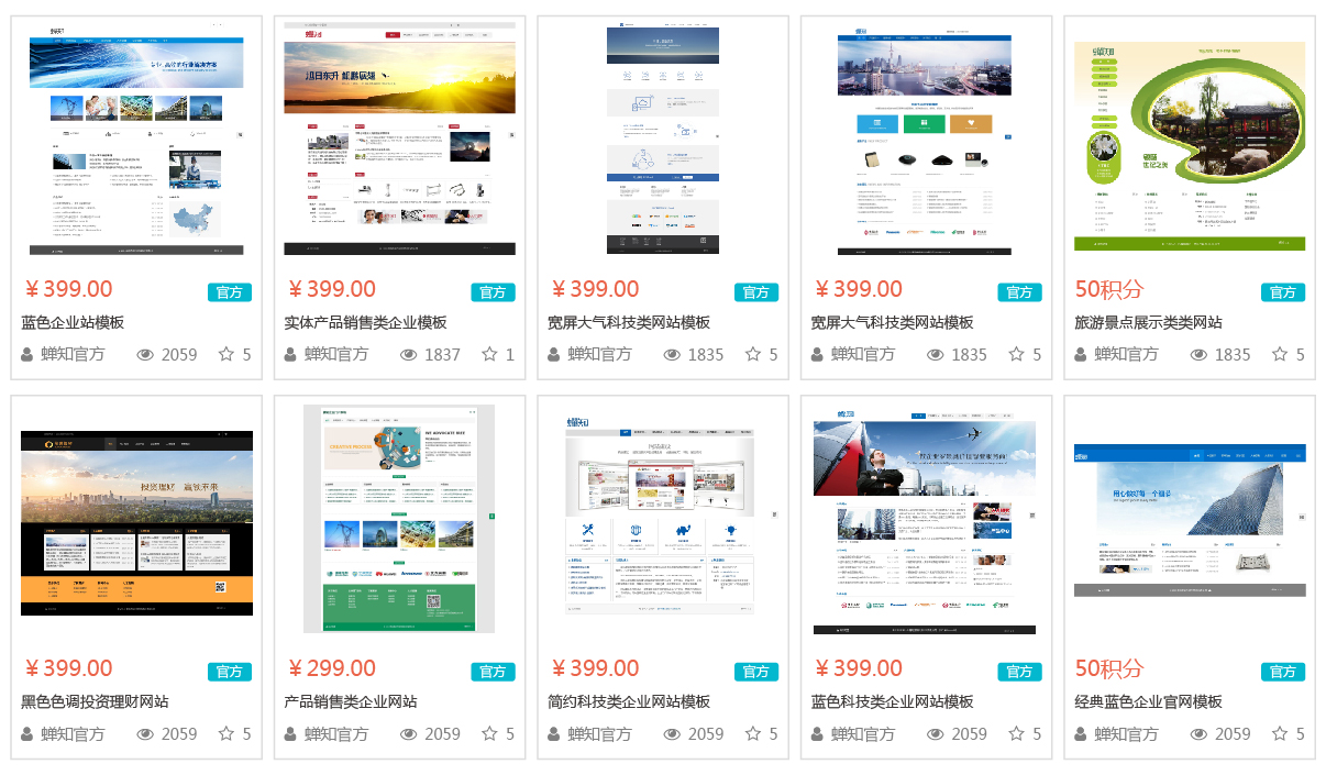 蝉知官网提供的官方主题 模板,可以直接使用,收费199元-399元不等