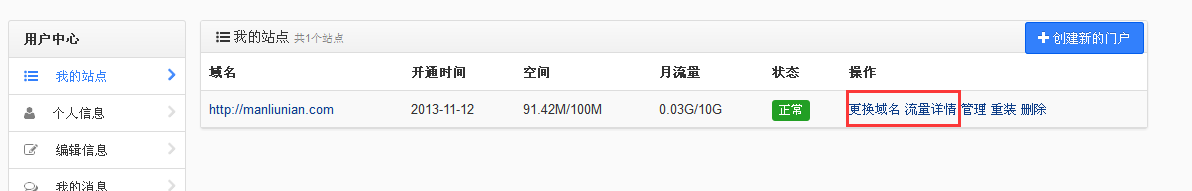 2、站点管理中显示流量详情的列表3、超出空间使用的用户停止上传功能