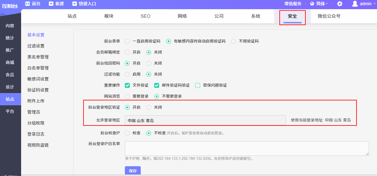 后台登录地区验证