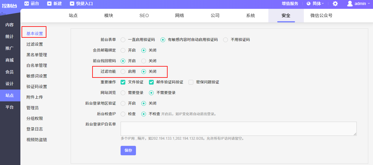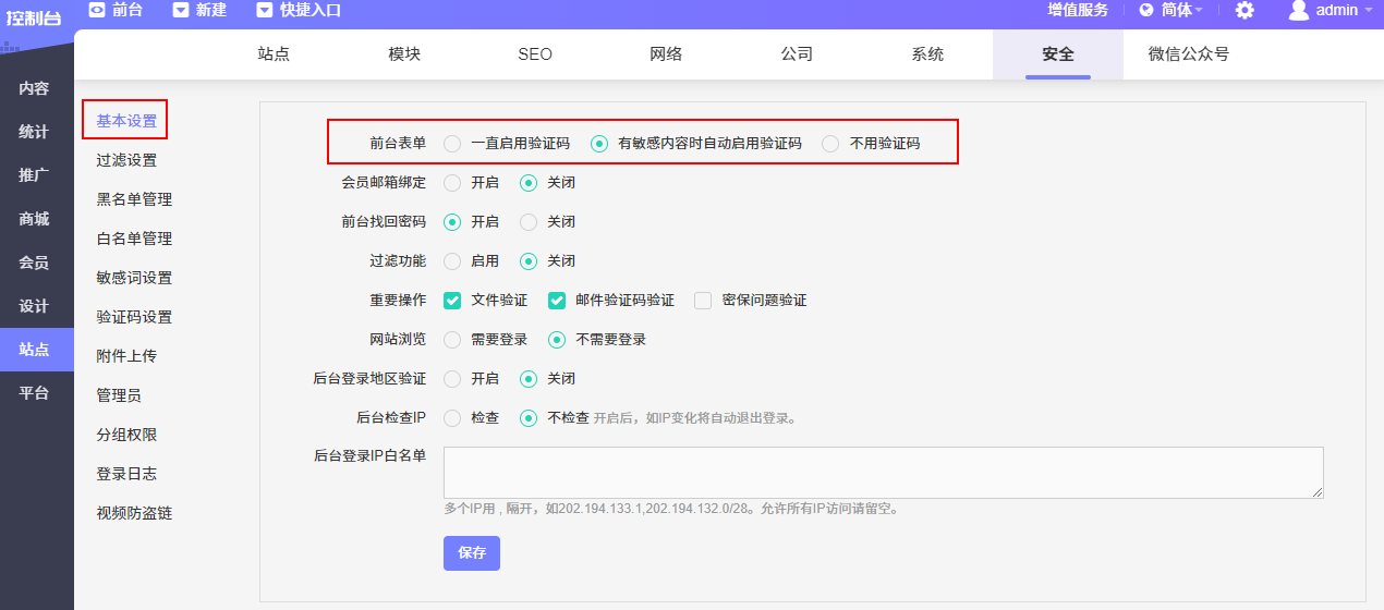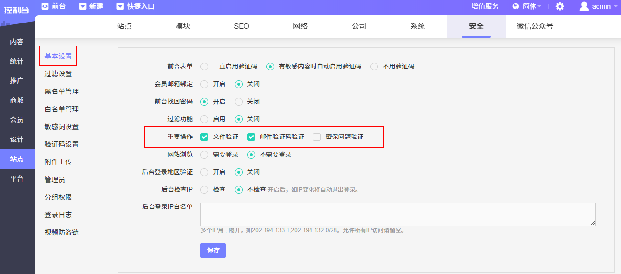 后台登录限定IP