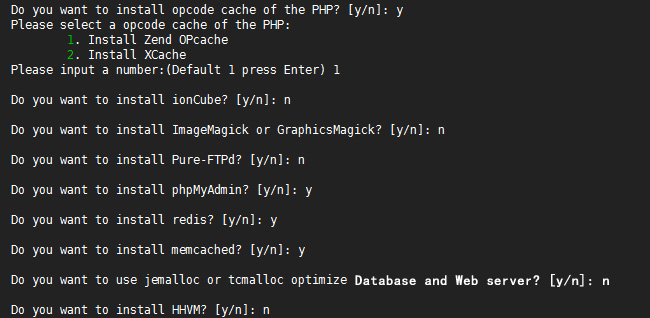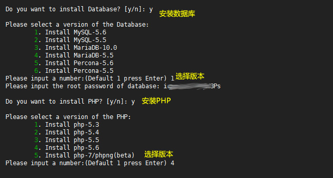 因为这个脚本的特点不是从开始就无人值守的,需要根据我们的环境进行选择各种版本,所以选择的过程比较复杂,我们要看清楚,在这个过程中我们安装 LAMP环境。