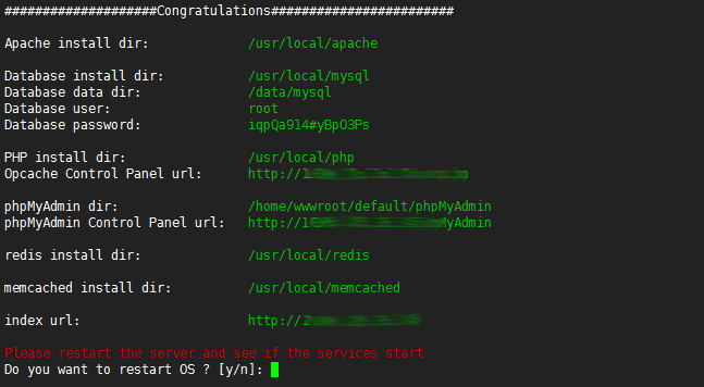 设置完毕之后,然后就是自动无人值守的安装,根据系统的速度需要执行 20-30分钟,总之我们就等待,等待看到上图的界面就标示安装完毕,我们可以输入 y重启服务器,然后检测下是否安装完整。